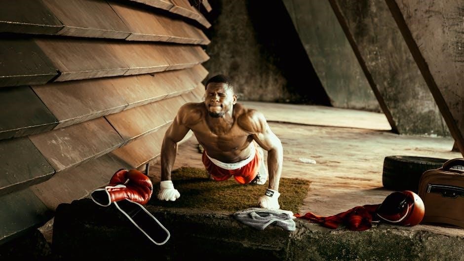 We’ll also explore his demanding core workouts, featuring rotational exercises with medicine balls and cable machines, alongside stability work on stability balls; Furthermore, a deep dive into his shadow boxing methodology, focusing on footwork drills, punch combinations, and maintaining proper form, will be provided. Each exercise was performed with intense focus and precision.